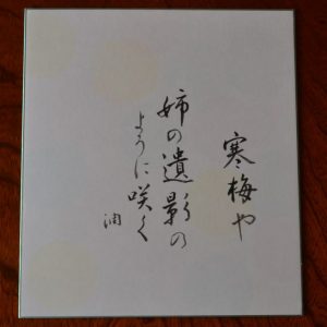 思いもよらぬパプニングに驚きもしたが、とにかくいつきさんのプレバトよりもずっと濃い話術に酔いしれた2時間だった。いつきさんに頂いた色紙は家宝にしよう。家に帰ると家内が入選句を色紙に認めてくれた。姉へのいい供養がひとつできたようだ。