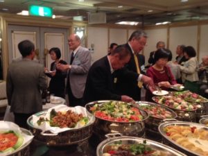 みんな逢えば笑顔が絶えない!お喋りに夢中で、美味しいお料理も残りがち(写真右)…。マイクを向ければほぼ全員が近況を語ってくれる。老いも若きもこんなに気を許せる会は無いように思う。三年後、元気だったらまたこの会のお世話をしたいと思う。楽しかった思い出は尽きない。上の写真はまだ現役の方々、関連会社の社長さんや部長さんクラスもぞろぞろ。おまけに美女が多い!!いいひと時を過ごさせて頂いた。