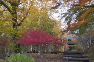ログハウス敷地内の紅葉は始まったばかり、あと1週間もすれば見頃になるでしょう。その頃には山中湖畔は紅葉ロードになります。敷地内には山野草がたくさんありますが、断ってりんどうを数株持ち帰り庭に植えました。