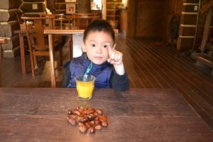 娘夫婦は四才のA君を置いて近くの富士宮市で行われているバスケ少女(A君の姉さん)の合宿・試合の応援に。残されたA君は仮面ライダーベルトを装着してジイジと闘ったり、敷地内で栗拾い!追っかけまわすジイジは大変でした。帰ってきた姉さんは「5勝1敗だったよ」とクールに…。