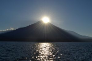 後半は晴天続き!この時期には山中湖畔からダイヤモンド富士が見れます。近くの長池親水公園からは11月上旬が見頃、この時はベストスポットを求め「ママの森」まで湖岸を歩いて撮影してみましたが、まだ少し山頂とはずれがありました。