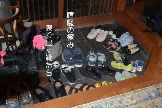 お正月、恒例のことだが我が家は子供たちの家族が集合してすごいことになっていた。3才~12才のお孫ちゃん5人の騒がしいこと!三才の「シンカリオン!」の連呼にはじいじは完全に圧倒された。集合写真を撮れば相変わらずのピースサイン!まあ、今年もみんな仲良く元気で過ごしたいものだ。玄関の靴たちも何事かと驚いたことだろう。じいじだけが風邪気味で不調…。