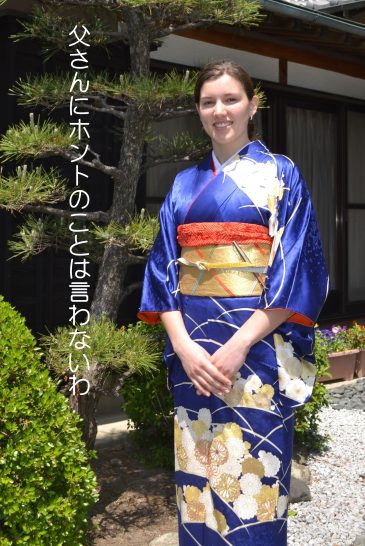 以前に我が家の庭での着物姿のエバちゃんをこのブログに掲載したことがあった。その時は「彼氏はいるの?」と聞いてもはにかんで笑っていたが、どうもこの頃にはもういたらしい。お父さんには内緒らしかったが…。