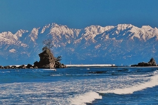 福光へしりとり遊び盛り上がる 晴れた日の立山連峰(氷見市から)