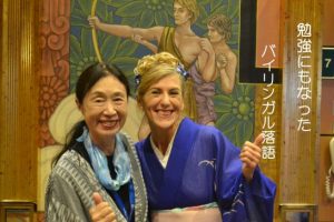 イギリス人女性ダイアン吉日さんの落語は楽しかった。日本語と英語で話すので勉強にも…。高座後、愚妻とツーショットのサービス。
