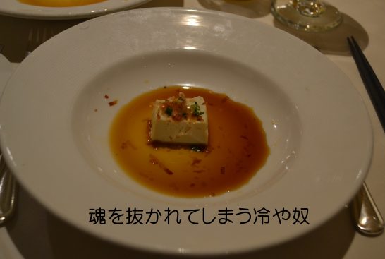 しかし、写真のような盛り付けの冷や奴にはびっくりされるでしょう。大皿の真ん中に小さな冷や奴!!別の意味で魂が抜かれそうになりました。これはダイタモンド・プリンセスというクルーズ船で供される冷や奴。ダイニングで日本食のコースを頼むといつもこれが出てきます。日本の家庭で食べるものとは大違い、味はそれほど変わりませんが、大きさに拍子抜けしてしまいます。上品に冷や奴を食べるつもりもありませんので、えっこれだけといった感じです。一口でパクリ!