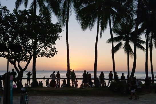 来ている。この日はハワイでは大晦日、水平線に沈んだ今年最後の夕日は日本では初日の出になっている。