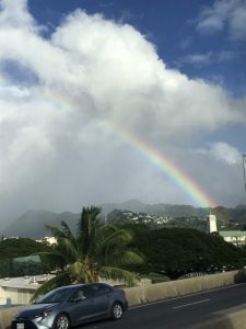 ハワイは別名でレインボーステイト(虹の州)と呼ばれている。結構雨が多く、特に一番西のカウアイ島は特に雨が多い。雨が降っても傘をさしている人は誰もいない!ほとんどがス
