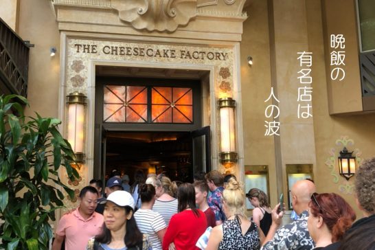 元旦の夕食だけはホテルを予定していなかったので街に食べに出ることにした。次男坊の奥さんがお勧めの「チーズケーキファクトリ」、ロイアルハワイアンセンターのワイキキ寄りにある。5時半にハワイアンセンターで待ち合わせたが、誰も来ていない。LINEを入れると「じいじ以外はまだ全員アラモアナにいます、トローリーが来ません!」。揃った