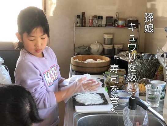 孫娘キュウリを抜いて寿司を巻く 潤