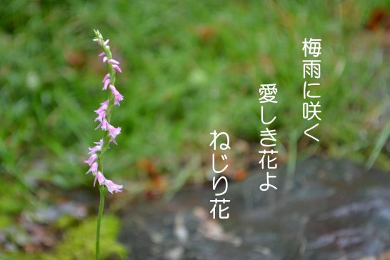 梅雨のこの時期になると庭石の間から顔を出す小さな可愛い花がある。自分で植えた覚えはないが、好きな花だ。「ねじれ花」と思っていたが、ブログを書く段になりネットで調べてみると、「ねじり花」または「ネジバナ」が正式な名前らしい。縁側の椅子に座って庭を眺めていてこの花を発見すると今年も逢えたかとホッとする。