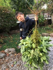先日は大きくなった孫(小学一年のサッカー少年)が群馬に来て枝豆の収穫を手伝ってくれました。30数本植えて、毎日一本ずつ抜き、数を数えるのを楽しみにしています。この一本で334房、全部家に持って帰りましたよ。元気な子に育ってくれるでしょう。