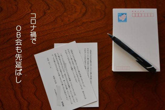 3年に1度勤務していた会社の研究所のOB会を行っていた。来年の3月がその期日に当たるのだが、このコロナ禍で仲間たちと相談して延期することにした。一番暇をしている私が会員に延期の案内状を出すことに…。入社当時は各事業所に研究所があり、私が入った研究所は新事業を担当する中央研究所的な存在であった。若い研究者も多く活気があったが、あるトップの方針で廃止されることになってしまった(涙)。無くなってしまった研究所の面倒をみる人はなく、退職者の私達がOB会の世話をしているのである。