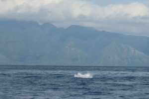 れました!ガイドさんが「スリーオクロック」と言えば客は全員右舷に、「ナインオクロック」で左舷に。小さな船は大揺れでした。でもクジラの写真を撮るのは難しい、撮ったはずの写真を確認すると水しぶきだけ…。まあそんなもんでしょう。帰る頃にはすっかり船酔い状態でした。