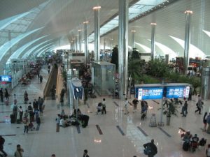ニターで日本を応援していました。予選を勝ち上がりました! 右の写真はアテネへの中継地のドバイ空港、巨大な巨大な空港で、移動が大変でした。