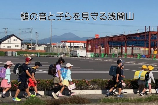 金婚の祝いに貰ったマッサージ機に座る前に散歩が日課になった。住んでいる団地の周りを約1時間歩いているのだが、集団登校の小学生に逢う時間になることがある。この風景は住み始めた40年前と変わらないが、その頃はこの辺りはすべて麦畑だった。北関東自動車道が出来、インターチェンジが出来、大きなショッピングモールが出来て景色は様変わりした。今もモールの一角に新しい店が建築中である。そんな建設現場で働く作業員さんや集団登校の子供たちを見守っているかのようにそびえる浅間山、40年前と変わらずにそこにある。子供たちの「おはようございます!」の声に元気をもらっている。