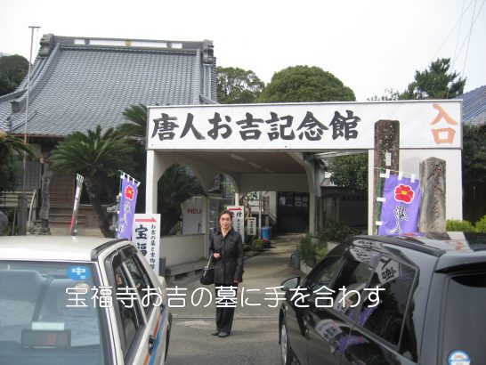 宝福寺お吉の墓に手を合わす 潤