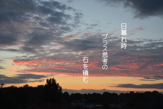 久し振りのこのシリーズの掲載です。若い頃と違って年をとるとなかなか前向きな気持ちを維持するのは難しくなります。お年寄りでも前向きな人を見ると羨ましくなります。自分もそうでありたいと思うのですがなかなかです。日暮れ時は特に淋しい感情になることが多いのですが、そんな時こそプラス思考でありたいなと…、願望ではありますが…。