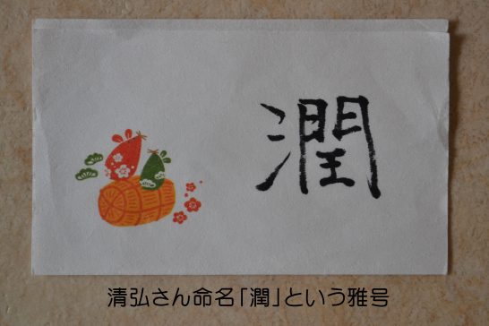 平成25年の「吉野ケ里川柳大会の旅」の最後です。この旅ではいろいろ楽しいことがありましたが、大会が終わった日の夕方に主催者の真島清弘さんに「隆という名はよくあるので雅号を頂けませんか?」とお願いしていたところ、翌朝に写真の雅号を頂きました。「なぜ潤ですか」とお聞きしたところ、「なんとなくそんな雰囲気が…」と。良く解りませんが、有難く頂きました!!女性でも潤という名前の方がいらっしぃますが、女性に間違われるのも結構なこと、すぐに気に入りました。この時以降、川柳の場では本名の「隆」を改め「潤」で通させて頂いています。