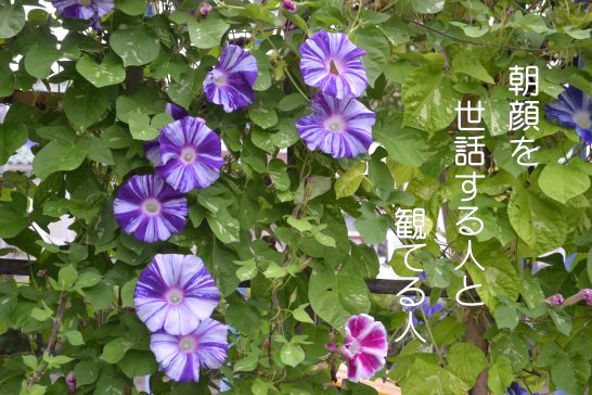 家の前の公園に今年も朝顔が綺麗に咲いている。住んでいる団地には公園が四つもあるが、家の前の公園が一番綺麗に管理されている。その公園での朝のラジオ体操に参加している人が約30人、その中の有志の方々が朝顔を育てていらっしゃる。毎年、竹で柵をこしらえ、苗を植え、水やり…、とても真似のできない世話ぶりである。今年も見