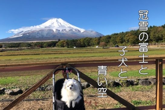 冠雪の富士と子犬と青い空 潤