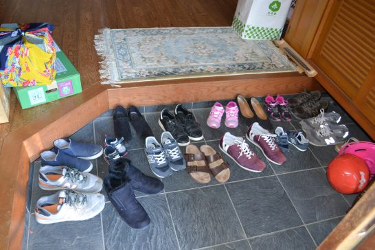 我が家は昨日から一族13人が集合、賑やかしいことである。玄関には大中小の靴が...。