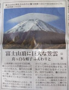 上の写真は五日目の傘雲!私どもは見逃したのですが、UさんがLINEで送ってくれました。富士山も笠を被ってさあ出かけるぞという雰囲気は感じませんか?