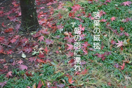 落葉の絨毯朝の雨に濡れ 潤