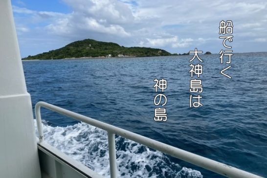 伊良部島、池間島、來間島は宮古島とは立派な橋で繋がっているが、大神島は島尻港から高速船で行くことになる。その高速船も乗る人が少ないせいか当日はUさんの奥さんが電話で確認しながらの乗船だった。遅れてやって来た切符売り場の女性は親切で、島一軒の飲食店に開店しているか確認を入れてくれた。乗ったのは8人、片道15分で船代は往復700円と格安!!