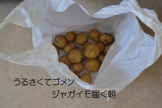 家の前の公園では毎朝ラジオ体操が行われている。多い時は30人くらい、今朝は15人ほどだったろうか。縁側の籐椅子に座って眺めているのだが、先日の朝は体操が終わってから月に一度のパーティが行われていた。平均年齢は80才くらいと思うのだが元気元気、大声でパーティを楽しんでいらっしゃる。終わってしばらくすると、リーダー格のNさんが「ごめんごめん煩かったでしょう、残りのジャガイモだけど食べて下さい」と写真のジャガイモの袋を持っていらっしゃった。Nさんは近くに畑を借りて本格的に野菜を栽培されている。我が家の細やかな野菜畑とはレベルが違うのである。この日は家内は用事で留守、お昼は頂いたジャガイモを茹で、我が家の茄子、ピーマン、シシトウと冷蔵庫にあったちくわを炒めて済ませたのでした。