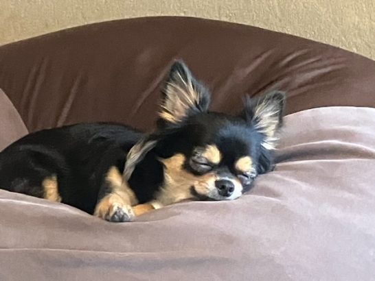 ワ(ナナちゃん)を連れてきた。この一匹で家中が和やかになる。長女家族がプールに遊びに行っている間はジイジ愛用のふかふかのクッションを横取りお留守番。吠えることもなく、しばらくすると気持ちよさげにおねむになっていた。動物が苦手の長男の娘も初めてナナを抱くことが出来てニコニコ顔だった。ペットの力って凄いなと思う。しかし元来戌年なのに犬が苦手な私は飼おうとは思わない。帰省時にナナに癒しを貰うだけである。今年の孫たちの盆帰省もいろんな話題を残して過ぎていきました。機会があるごとに会いに来てくれる子供達家族とワンちゃんに感謝です。