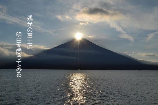 富士五湖の山中湖畔のロッジに通い始めて13年になる。毎年3~4回出かけているが富士山が好きになるばかりである。足が悪く富士山には登れないのですが…。青天の富士山に対峙した時、堂々としたその姿に、ああ日本に生まれてよかったと感じ元気をもらうのです。これまでに「富士」を詠みこんだ句は自句検索をすると210句にもなります。フォト川柳にしたのは50作品くらいでしょうか。前回のコスモスのフォト川柳の掲載に続いて富士山を題材にしたフォト川柳の第一弾を紹介します。3つ目のダイヤモンド富士は感動ものです、ぜひ一度ご覧下さい(ここ長池からは11月始めの4時半頃にダイヤモンド富士が見えます)。