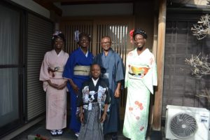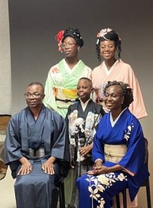 前回の掲載でも少し書きましたが、今ナイジェリア出身のカナダ人であるジュリエット家族5人が日本に遊びに来ている。10数年前に4年間ほど前橋に住んでいて、ご主人は群馬大学の講師をしていた。現在ご主人はカナダの大学で教えている。前橋に住んでいた時に家内は奥さんと知り合い、数度我が家にも遊びに来ていた。と言うが私はほとんど覚えていない…。そんな家族が日本にいる間に着物を着たい