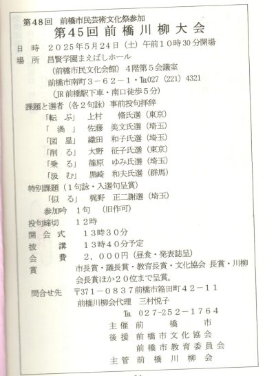 5月24日(土)は前橋川柳大会です。多くの方々のお越しをお待ちしています。
