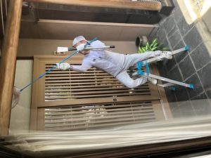 たが、やはり専門の業者でないと無理らしい。前橋市のサイトを見ると指定の蜂の巣除去業者があったので電話するとすぐに来てくれた。費用は市が半額の補助!除去業者の方がスプレーを吹きかけると10匹ほどの大きな蜂が飛び出てきた!巣の周りをブンブン、巣を落してしばらくするとどこかへ飛んで行った。(右の作業中の写真を挿入してみたが、どうしても写真を回転できなかった?なぜだかわからないが笑える)巣を追われたスズメバチ、こんどはどこで巣を作るのだろう。
