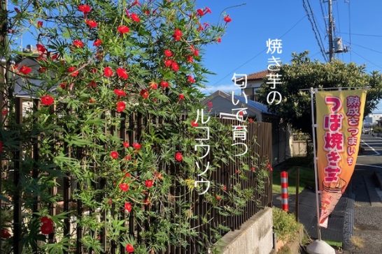 我が家の周りのフェンスに家内の好きな赤いモミジバルコウソウの花が咲き乱れている。毎日蔓が伸びるので剪定が大変である。剪定をすればこの野郎と言わんばかりに次の日も蔓を伸ばしている。お隣は焼き芋屋を始めた!この暑い夏も営業していたが、お客さんはあまり見かけない。上の写真のように焼き芋の匂いにつられるかのようにお隣の方へと花の勢いが伸びていく。ルコウソウも焼き芋の匂いが好きなんだろう。ご近所でこのモミジバルコウソウの種をお分けした方も数軒あるが、焼き芋のせいか我が家のルコウソウが一番見事に咲いている。