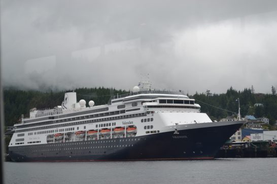 などを散策した後にフォーレンダム号(写真左)に乗船。アラスカに向けて穏やかなインサイド・パッセージ(内海航路)を航行していきました。ネットでは、
