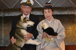 クルーズ船内ではこの夜フォーマルディナーでした。美味しいロブスター料理をいただき、クルーズ船の乗員さんたちとも交流を深め、楽しい夜でした。アラスカ犬も白頭鷲ももちろんぬいぐるみですよ。