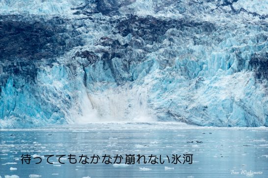 海に流れ込むジョンポプキンス氷河を見るツアーに参加しましたが、このツアーは季節限定でした。氷河の手前の海の氷上にはアザラシが沢山住んでいます。アザラシの子育てが終わるまではクルーズ船は氷河に近づけないのです。幸いにもその季節は外れていましたので氷河の近くまで行くことができました。氷河の崩落の大迫力の写真(写真上、手前の氷上の黒点がアザラシ)を撮ろうとしたのですが、残念ながら氷河は思い通りには崩れてくれませんでした。写真はツアー仲間のWさんに頂いたもの。