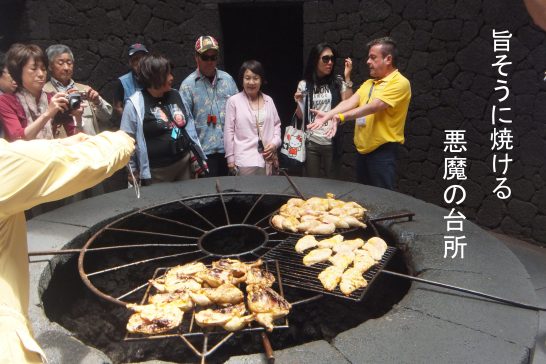 船を降りて島を巡るツアーに参加した。火山のふもとに近づくと多くのラクダが待っている。百頭以上はいた。外国人客たちは嬉しそうにラクダ乗りのツアーに参加していた。国立公園の山の頂上付近にレストランがあり、そこでは地熱で肉などを焼いていた。「悪魔の台所」と呼ばれ、燃料費はかからない!旨そうに肉が焼けていた。この島は火山活動で何度も住民が島から避難をしたらしい。「猿の惑星」の撮影場所だったらしいが荒れた土地ばかり、ワイナリーはあるが観光の島といえるだろう。