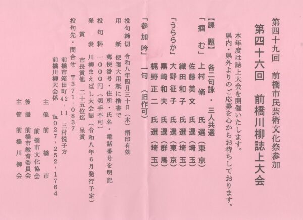 前橋川柳会は今年から誌上大会に移行します。そのご案内です、ふるってご投句下さい!
