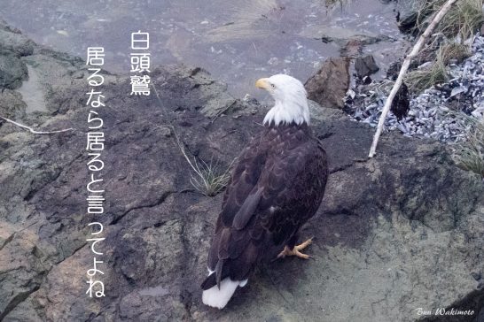 ホエールウオッチング帰りのジュノーの船着き場。帰りのバスに乗り発車すると反対側の窓の人が「あっ、こんな所に白頭鷲がいる!」と騒ぎ始めた。急いでバックからカメラを取り出しましたが間に合いませんでした(涙)。いつも良いカメラでシャッターチャンスを逃さないWさんがパチリ!今度もWさんの作品をお借りしました。こんな至近距離での野生の白頭鷲の写真は凄い!