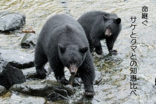 この写真も「野生の熊」を見に行かれたツアー仲間の写真家Wさんに頂いたもの。吊り橋の上から10mほどの至近距離で川へサケを採りに来るブラックベアの親子を見ることができたとか。全部で5頭ほど現れたそうな。日本ではこんなツアーは無いでしょうねえ。楽しかったらしいですよ。