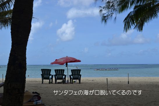最初の課題は「口説く」。こんな課題に合った写真は探すのも難しい...。ということで無理矢理この写真を選んでみました。グアム島サンタフェの海。グアム島へ最初に行った頃はまだ元日本兵の横井庄一さんが隠れていた頃。数年前はまだ幼い孫を連れてよく行ったが、今は北朝鮮のミサイル問題で観光客も減っているらしい。サンタフェで思い出すのは宮沢りえさんの〇〇〇写真集「サンタフェ」。会社の部下が買ってきたのを更衣室でそっと見せてもらったことがあった。その部下もしばらく前まで中国の子会社の社長さん!!世の移ろいははやい...。