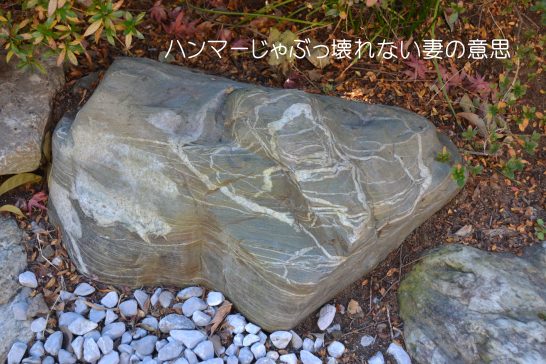 課題に「固い」、幣もかなりの石頭だが、家内のそれには完全に負けている。言い出したらきかない状態、今日も東京の女子会に出かけて行きました。そこで長年雨に打たれてきた庭石をパチリ。出逢ってそろそろ五十年、妻の固い意思(石)に苦労しております…。