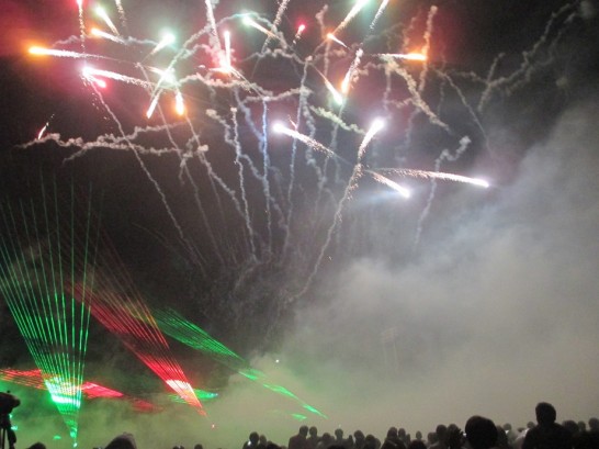 写真下: ゴジラとは無関係。昨夜のレーザーショー&花火の内の1枚。お口直しに。