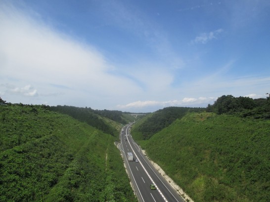写真上: 昼前の散歩。久しぶりに、私のパワースポット「東伯第3跨道橋」に向かった。写真は跨道橋の中央から西(米子方向)を見る。日曜日のせいか、いつもより少し車が多い。跨道橋の上は爽やかな風が吹き抜けていて、大いなる「気」を頂戴した。帰路、例の栗を見に行ったら、またいっぱい落ちていた。写真下。