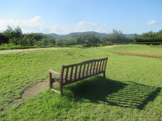 写真上: 爽やかな初秋の風に包まれた、久しぶりの「考える椅子」。「元気そうで何よりです。でも、飲み過ぎないように…」と言っていた。