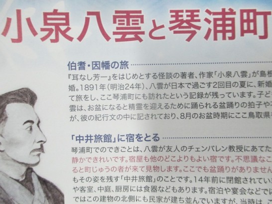 上のポスターは、【小泉八雲と平家物語の世界】 珍しい琵琶の演奏があるとのこと。それよりも、このポスターに記されている「中井旅館に宿をとる」のこと。