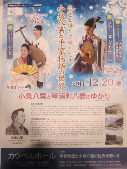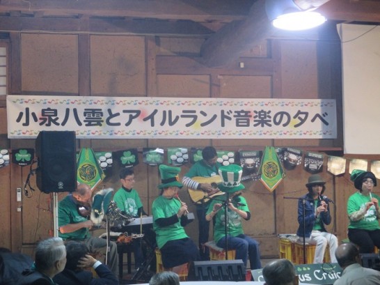 「小泉八雲とアイルランド音楽の夕べ」今回で3回目です。これからも続けると関係者は言っていました。曾孫の小泉凡さんと奥さんの「ギリシャとアイルランド」の土産話が面白かったです。ハーンの生誕地ギリシャで記念館が建てられて、「来年は盛大なフェスティバルが開催されますので、是非行って下さい」と言っていました。が、ギリシャはちょっと遠すぎるよね~。